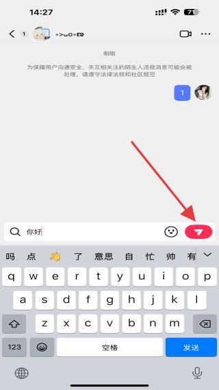 4、在输入框中输入你想说的内容,点击发送按钮即可。