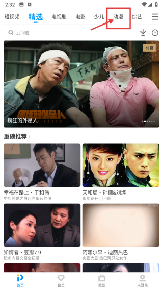 1、打开视频类应用,点击顶部动漫分类选项,进入动漫频道页面。