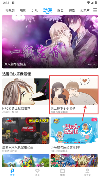 2、在动漫频道页面,点击天上掉下个小包子动漫条目,进入播放页面。
