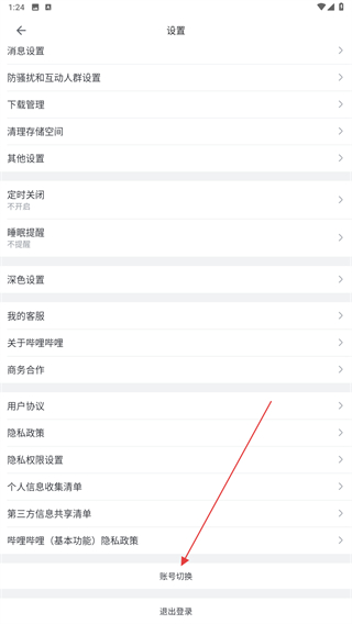 3、进入设置的界面内,点击下方账号切换的功能按钮。