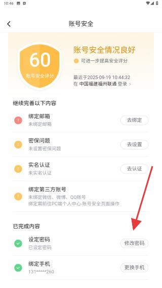 4、进入账号安全页面内,向下滑动找到并点击修改密码的按钮开始修改。
