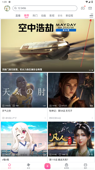 1、启动哔哩哔哩APP,进入首页点击右上角三个横线的图标。
