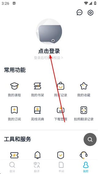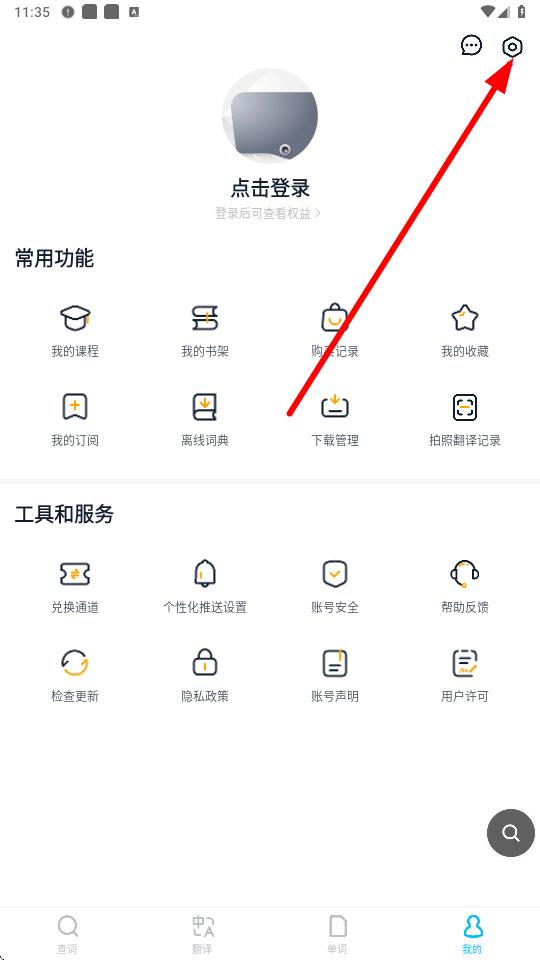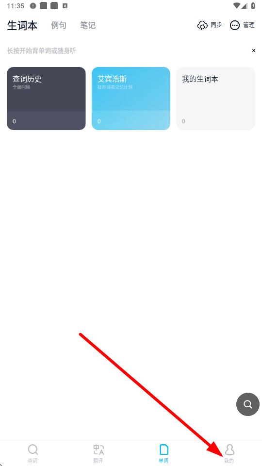 1、打开金山词霸,点击底部导航栏中的我的选项。