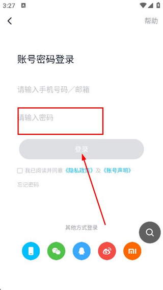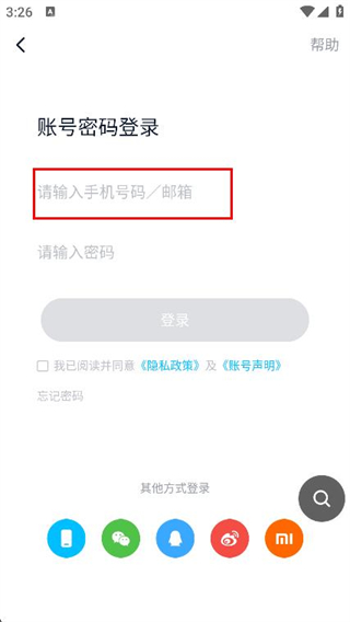 3、在请输入手机号码/邮箱输入框中填写账号。
