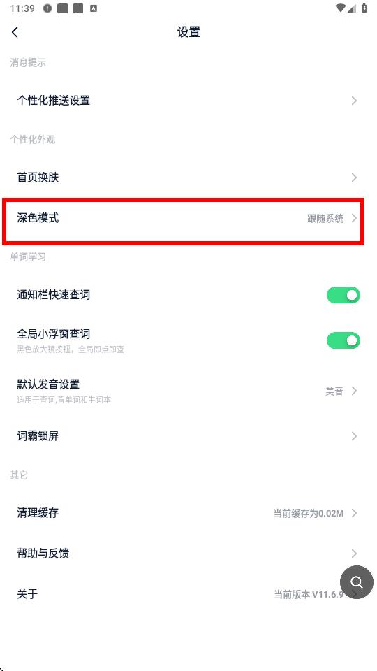 3、在设置页面中,找到深色模式选项,进行设置即可切换夜间模式。