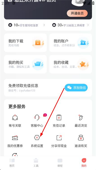 2、在我的页面中,找到并点击下方的系统设置选项。