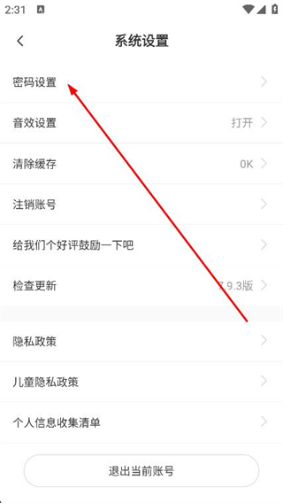 3、进入系统设置页面后,找到并点击密码设置选项。