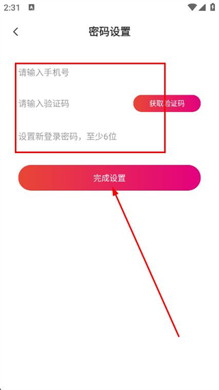 4、根据要求设置密码,点击完成设置,即可完成密码修改。