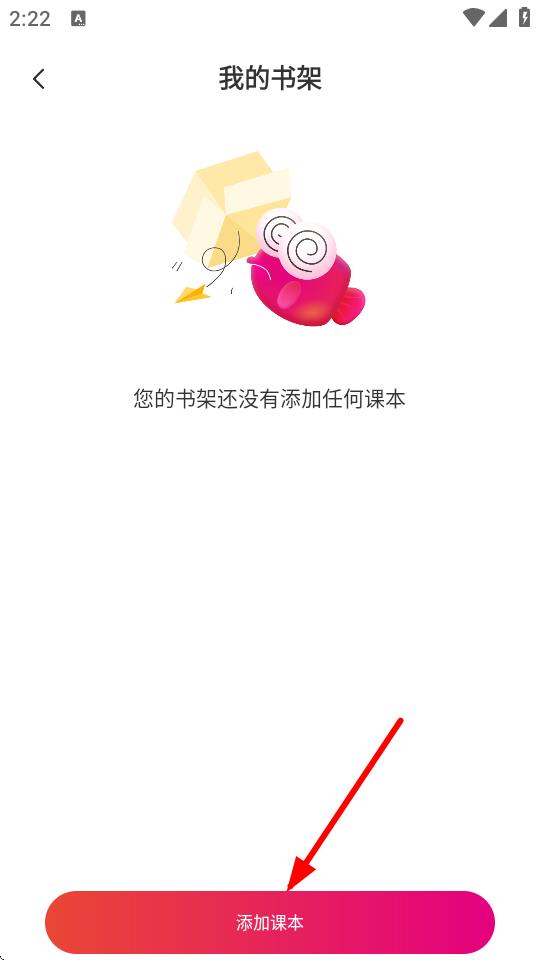 2、在我的书架的界面,点击添加课本,进入课本库的页面。