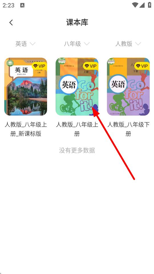 3、在课本库的页面,需选择目标课本,进入课本详情的页面。