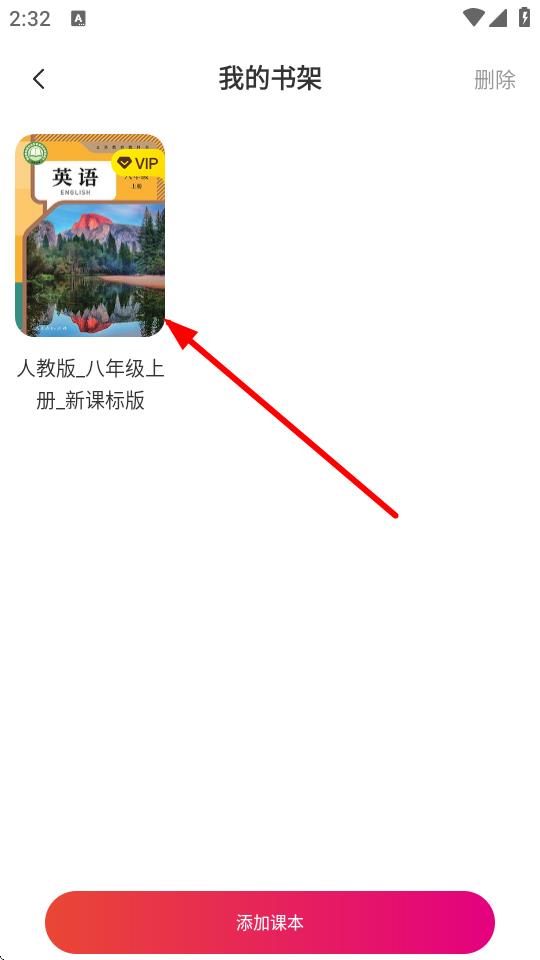 2、在我的书架的界面,点击目标课本,进入课本的详情页面。