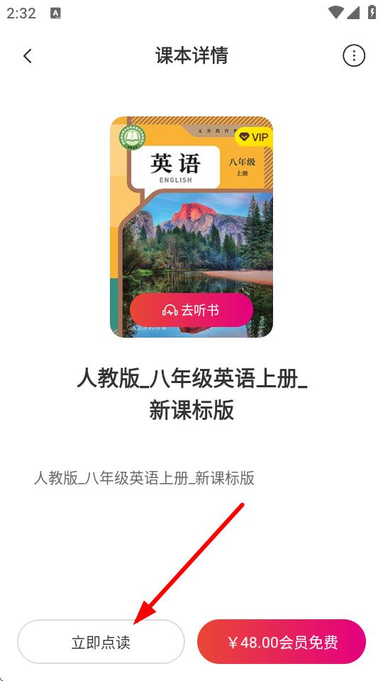 3、在课本详情页面,点击下方立即点读按钮进入点读界面。