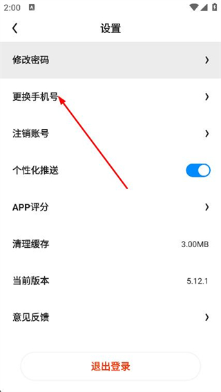 3、进入设置页面后,找到并点击下方的更换手机号选项。