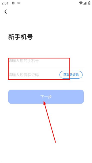 4、输入手机号和验证码,点击下一步即可更换手机号。
