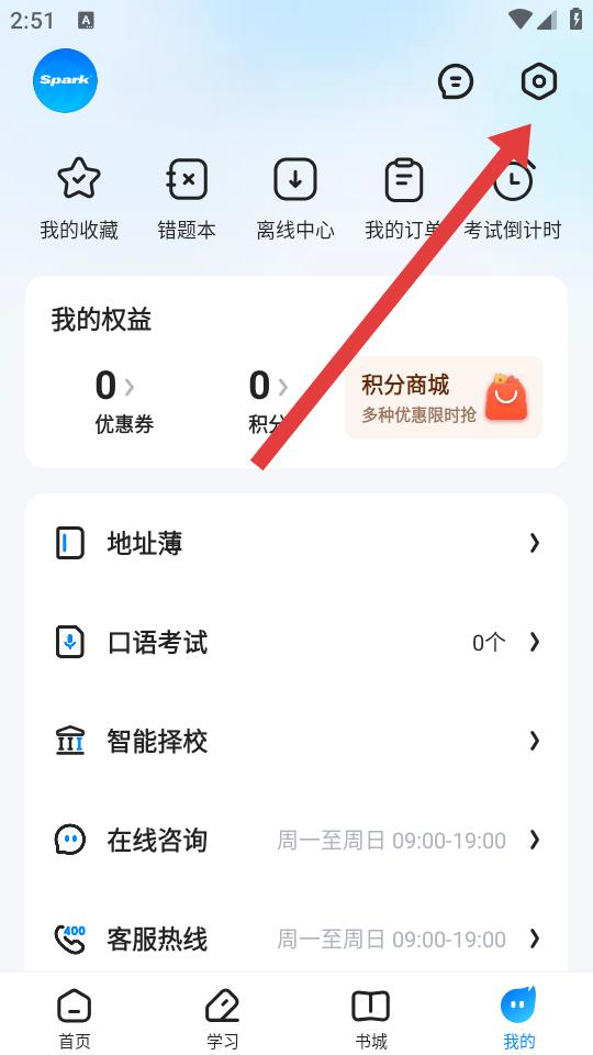 1、打开星火英语app,点击底部导航栏的我的选项。