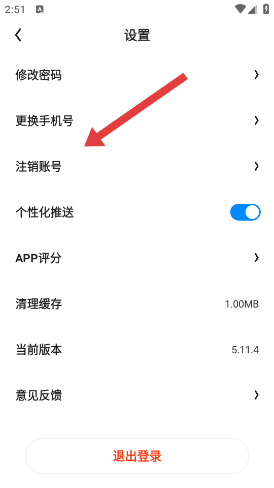 2、在设置的页面,点击注销账号,进入注销风险提示的页面。