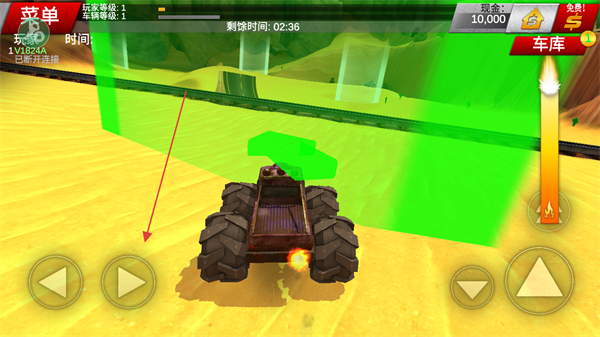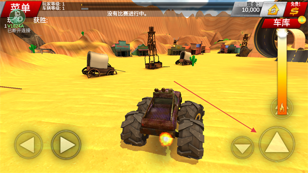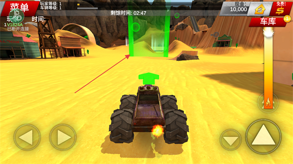 2、点击向上按键加速,驾驶越野车在沙漠中行驶,熟悉操作。