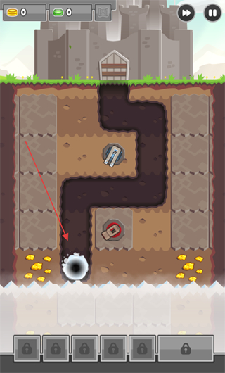挖掘防卫者无限钻石是一款融合挖掘建造与塔防对抗的作品,核心围绕地下城堡保卫战展开,作为城堡卫士,需应对地面升起的危机,通过自主挖掘地道规划敌人行进路线,而非在固定路线中布置防线,结合类似保卫萝卜的塔防玩法,在挖掘的通道旁安装防御塔,合理设计路线与防线布局,将敌人全部消灭在地下,带来兼具创造与策略的塔防体验。