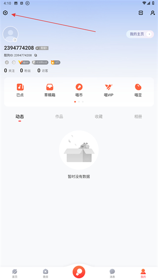 1、打开酷狗唱唱的APP,进入首页点击右下角我的图标。