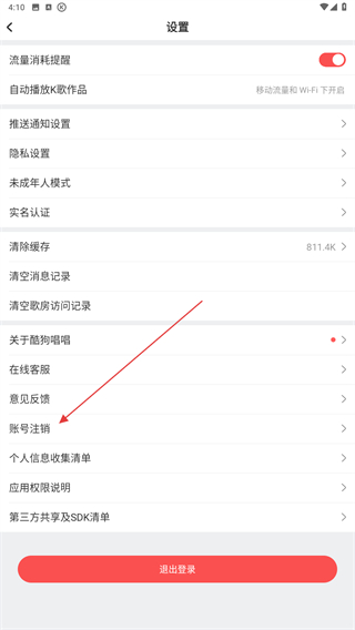 3、进入设置的界面内,点击下方账号注销的功能按钮。