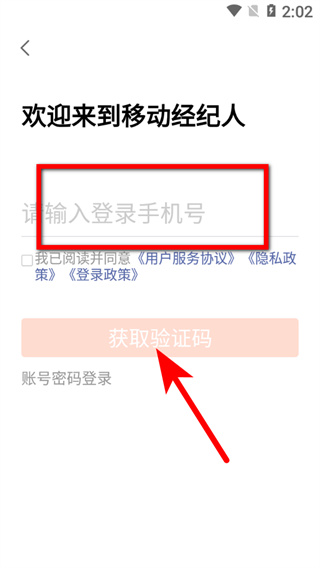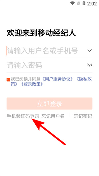 1、在移动经纪人登录页面,点击手机验证码登录选项,进入手机号填写页面。