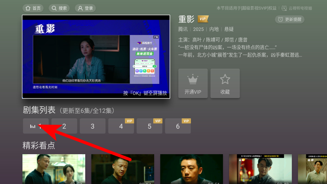 2、在免费内容页面,找到目标电视剧后点击剧集列表中的集数,进入播放界面。
