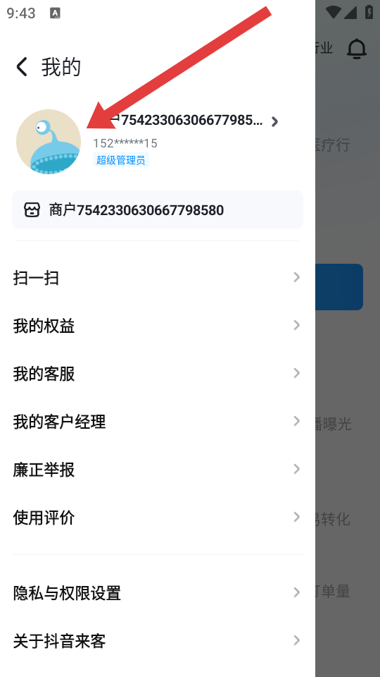 1、进入抖音来客的界面后,点击左上角头像,进入到我的页面,这是修改头像的第一步。