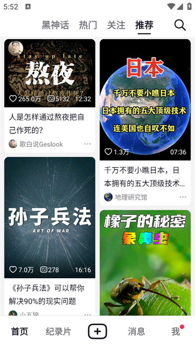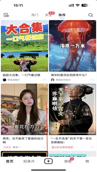 整个软件因为是中长视频方向,所以整个界面还有功能比较简单,更加注重视频内容,带来有效价值。