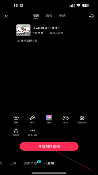 3、进入视频直播的界面内,点击下方开始视频直播即可。
