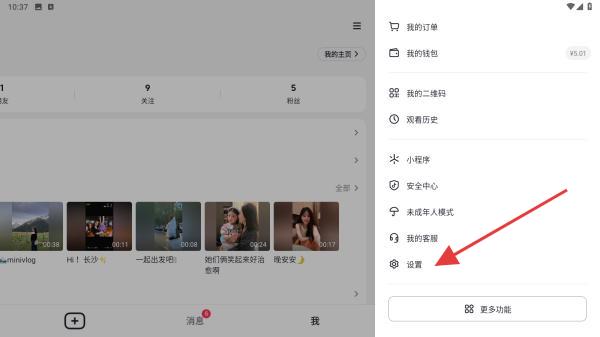 2、在右侧弹出的菜单栏中,点击设置的功能按钮。