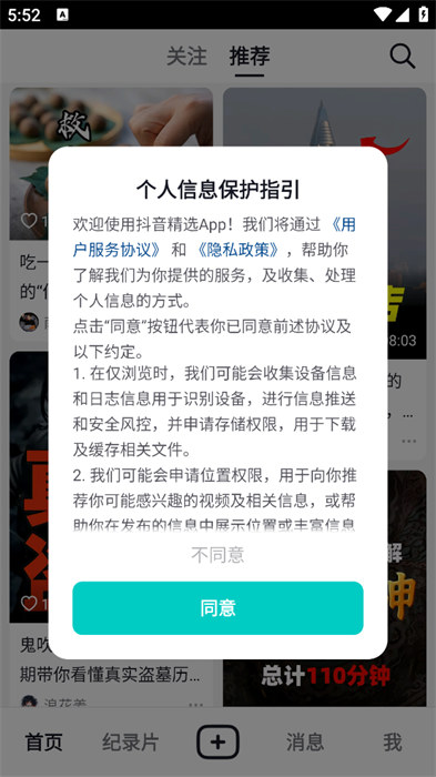 1、打开软件之后阅读隐私政策和用户协议,点击同意之后就能进入到软件;