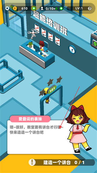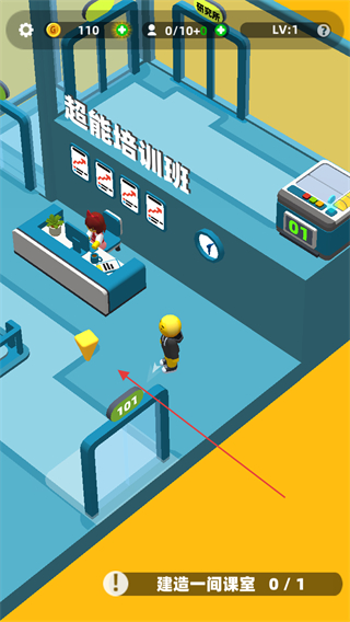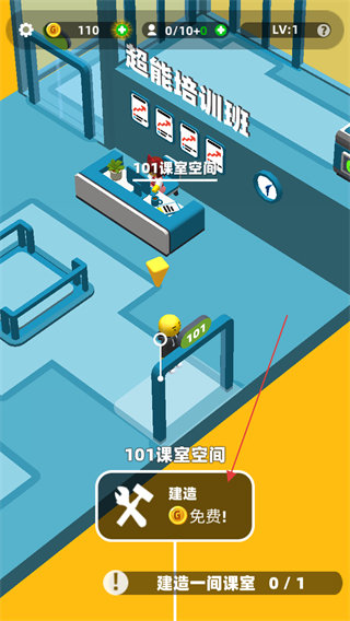 1、根据任务提示,如建造一间课室,点击对应的建造区域,选择免费建造如101课室空间。