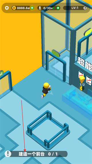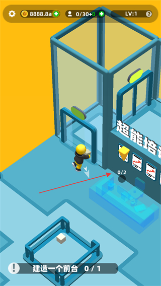 2、工人会自动搬运材料,进行设施的搭建,如前台的建设需要完成材料搬运进度0/2等。