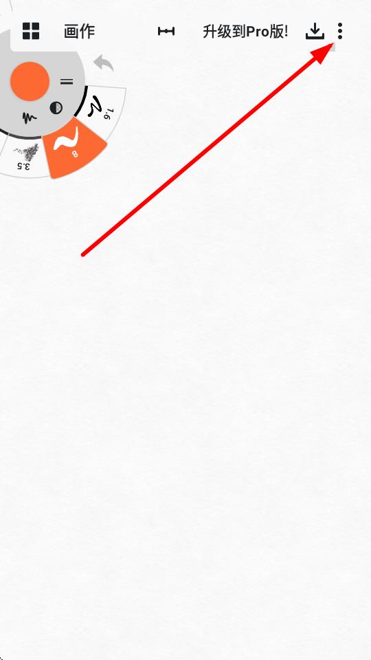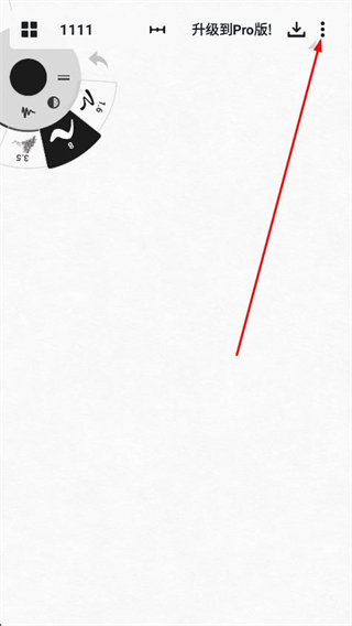 2、在绘画的界面,需要点击右上角三点菜单,展开功能的选项。