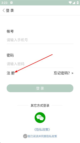 1、打开古诗词飞花令app,点击下方的注册选项。