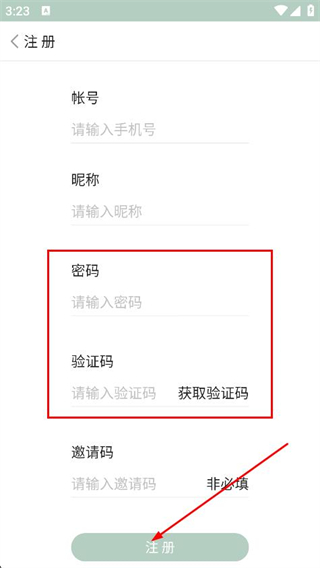 3、填写密码和验证码,点击注册,即可完成注册。