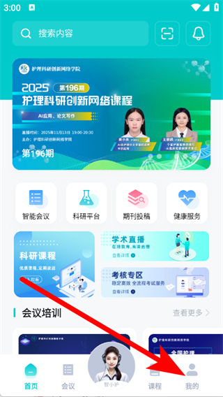 1、打开智护医学,点击底部我的,进入个人页面。