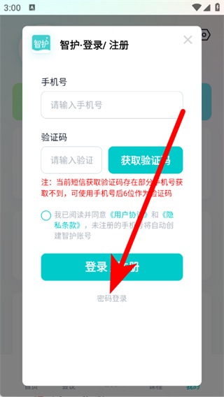 2、在登录界面,点击密码登录,进入密码登录页面。