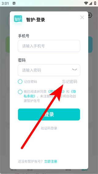 3、在密码登录页面,点击忘记密码,进入找回密码页面。