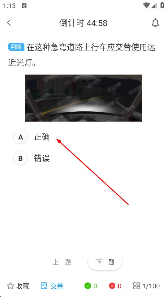 3、进入答题界面,根据题目内容选择答案,选择认为正确的选项。