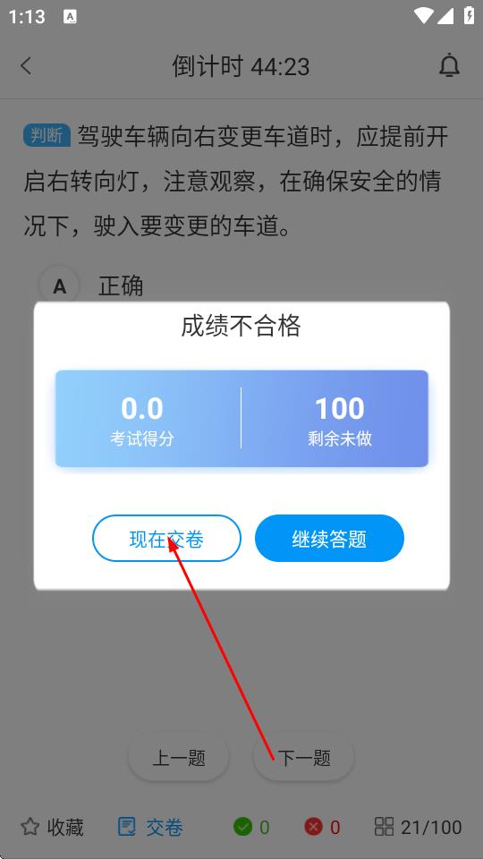 4、答题过程中,如果想要结束考试,可点击现在交卷,完成模拟考试。