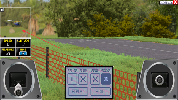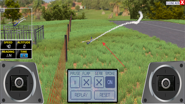 2、若进入暂停界面,可查看控制模式说明,熟悉油门、升降舵、方向舵、副翼的控制方式,点击RESUME继续游戏。