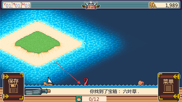 1、驾驶船只在海上探索,寻找宝箱,如找到六叶草宝箱,获取资源。