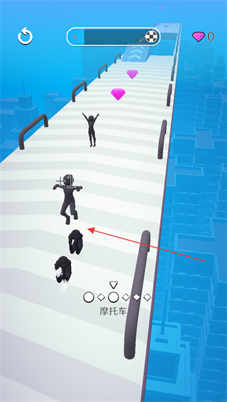 内置功能菜单涵盖所有火柴人合体造型与交通工具类型,无需通过跑酷进度解锁,直接选用心仪的人型“车辆”开启挑战。