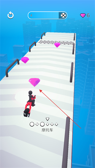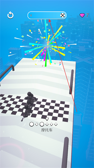 4、当到达赛道终点的黑白格子区域时,完成关卡,屏幕会出现彩色纸屑庆祝,同时可获得相应的钻石奖励,之后可进入下一关继续挑战。