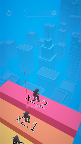 2、赛道上存在×2.2,×2.1等倍数区域,驾驶角色进入这些区域,可使角色数量和能力倍数增长,提升通过效率。