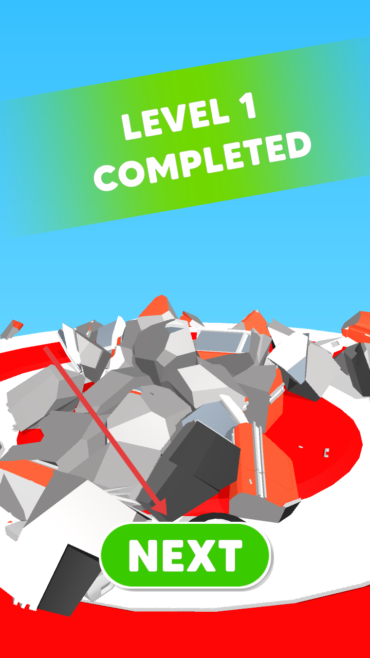 4、关卡胜利后点击NEXT按钮进入下一关,继续挑战更多建筑场景的关卡,提升锤子操控的精准度。