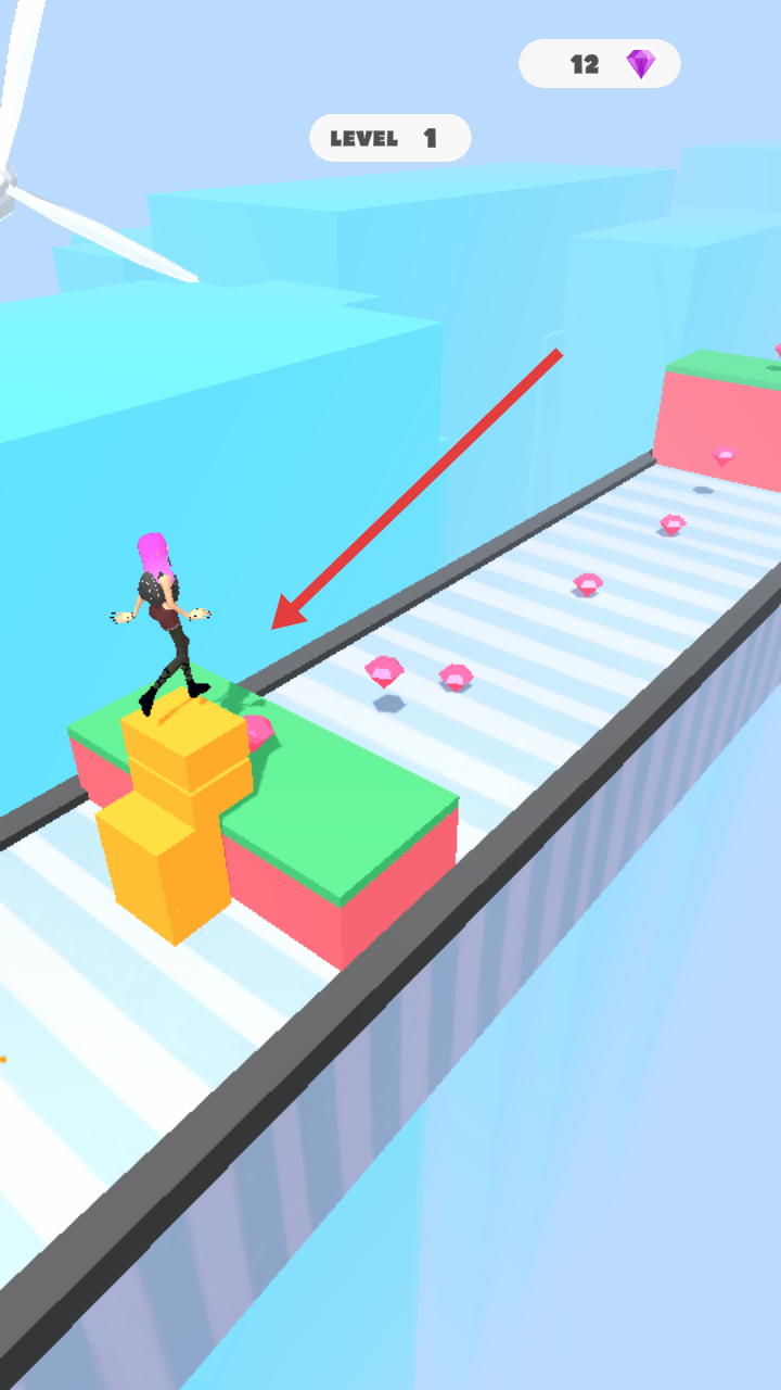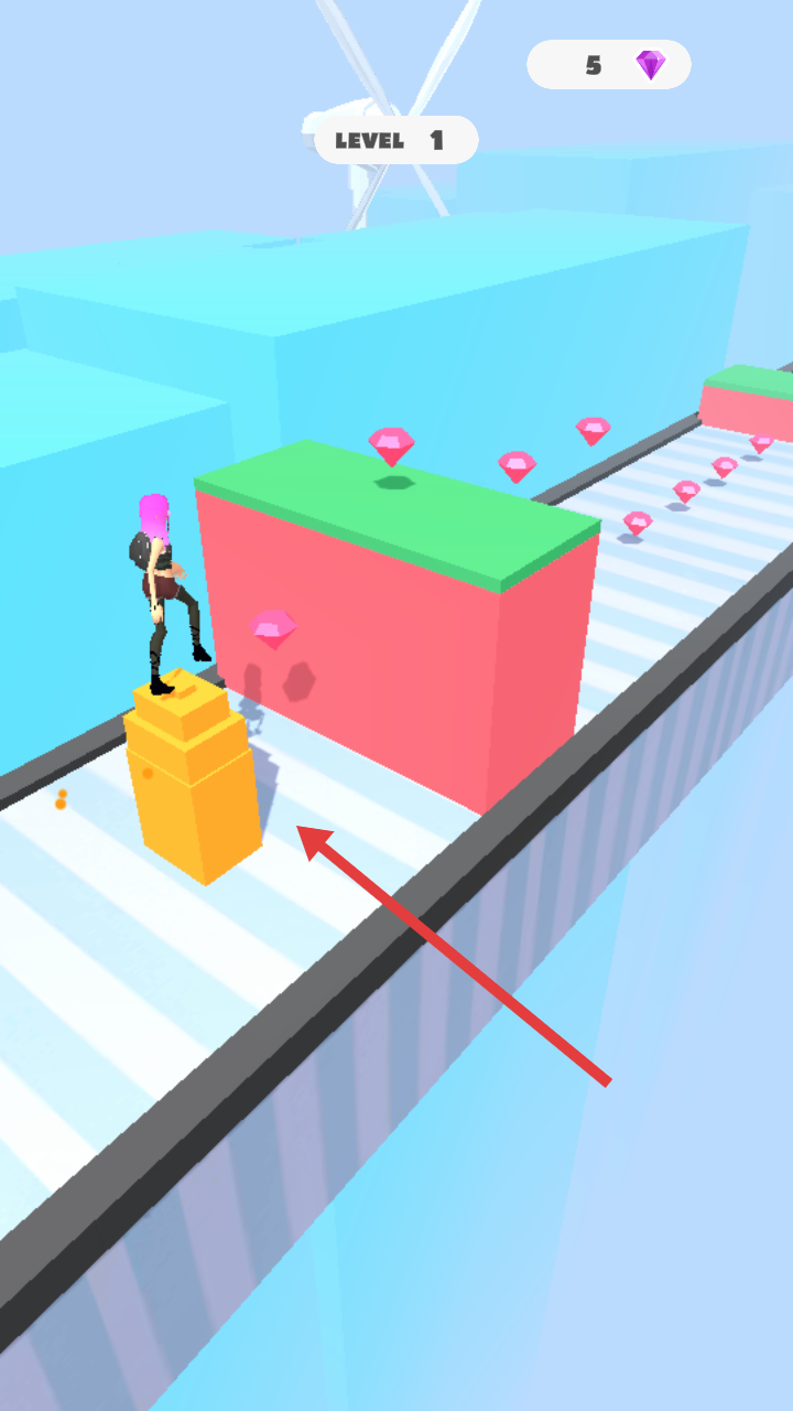 2、利用黄色方块搭建路径,越过红色障碍物,继续收集钻石。