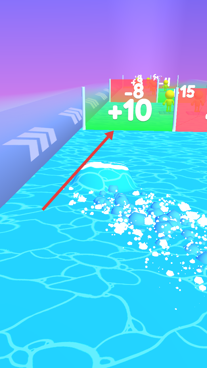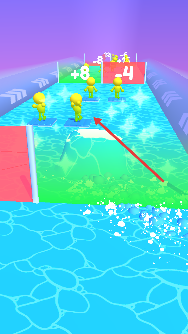 3、持续移动,合理规划路线,尽可能多地增加海浪,冲向人群,确保顺利通过关卡。