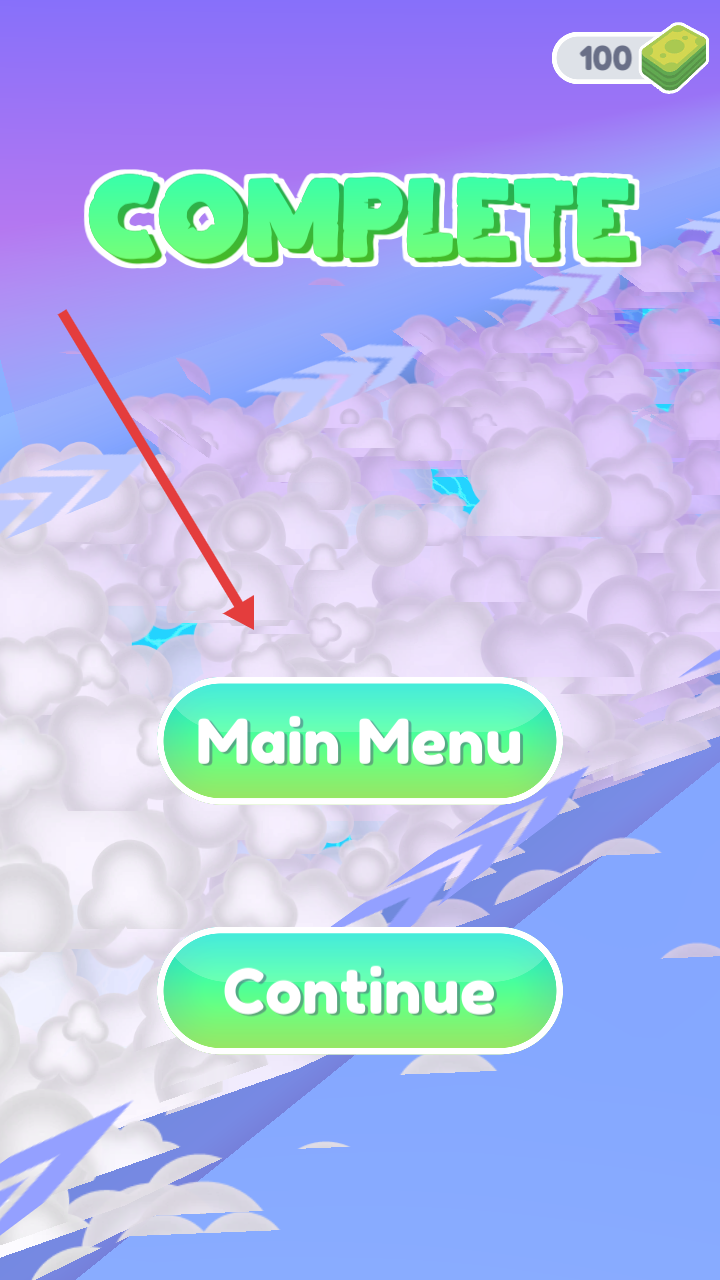 4、关卡胜利后可选择MainMenu返回主菜单或Continue继续挑战。